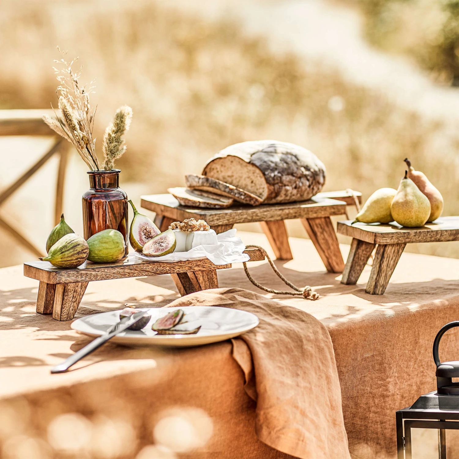 Sie finden, bei vielen Dekorationen ist Luft nach oben, und deshalb werden Sie mit dem On Stage Holzpodest kreativ. Mit diesem rustikalen Holzpodest aus natürlichem Mangoholz heben Sie z.B. Dippschalen auf dem gedeckten Tisch hervor, oder Sie machen Windlichter und Vasen zu einem erhabenen Highlight. Da das On Stage Holzpodest mit Griffen und Füßen in den drei Größen erhältlich ist, können Sie auch unterschiedlich große Holzpodeste gemeinsam arrangieren, so zaubern Sie ausgefallene Arrangements. Lassen Sie einfach Ihren guten Ideen freien Lauf.